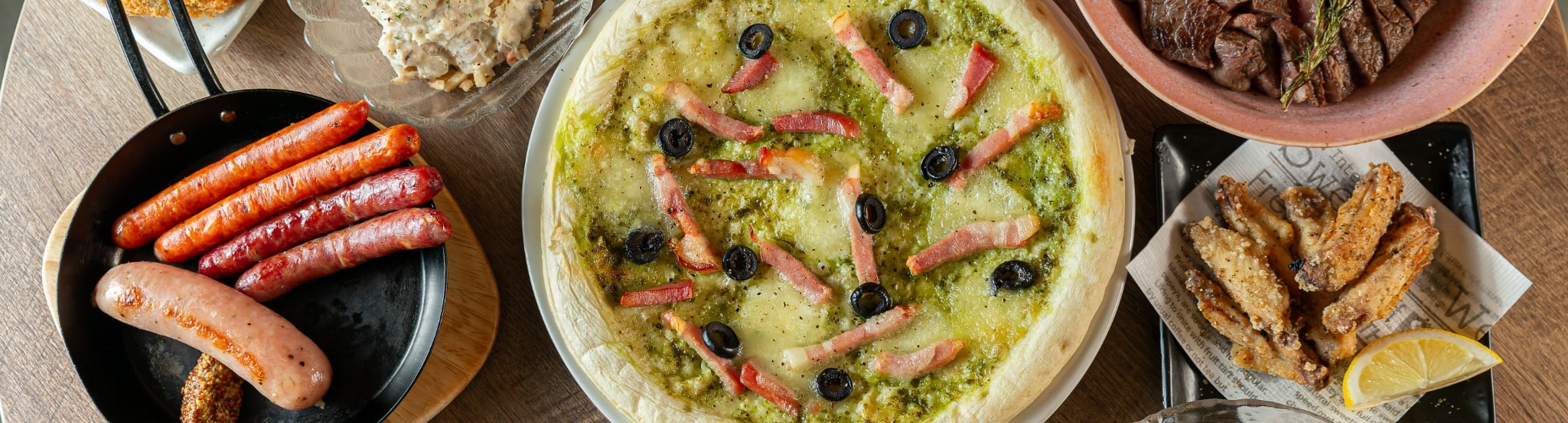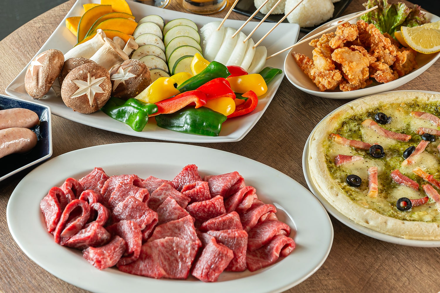 黒毛和牛・野菜・ 窯焼きピザ・唐揚げ・ソーセージ・ 焼きおにぎり